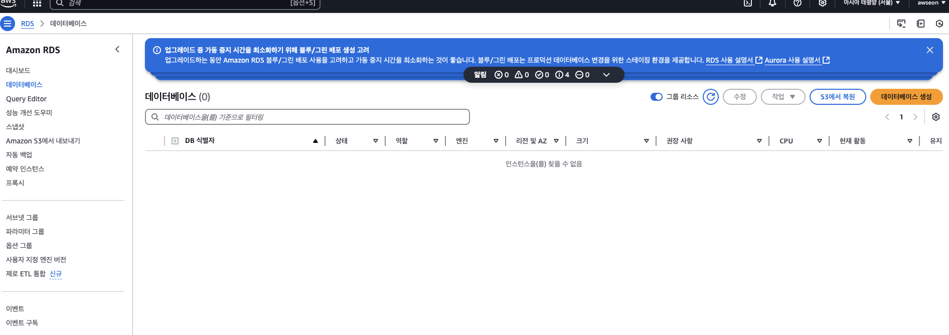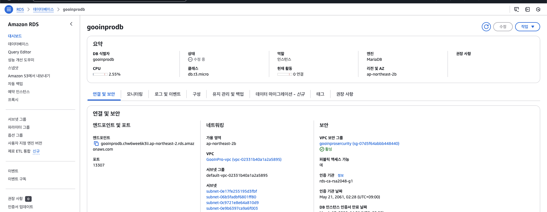 수정중 종료 이후 rds 재부팅