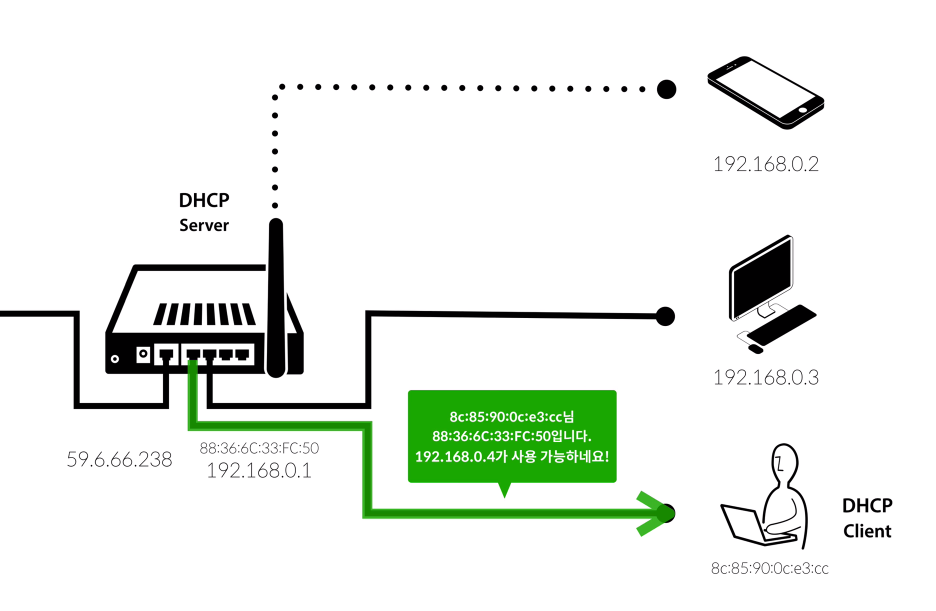 2. DHCP Server는 DHCP Client에게 사용 가능한 IP를 자동으로 부여한다.