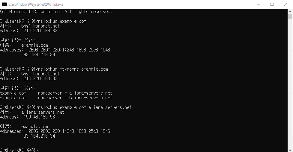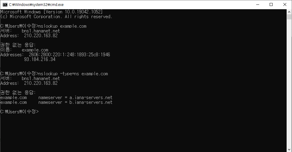 cmd 👉 nslookup 도메인주소