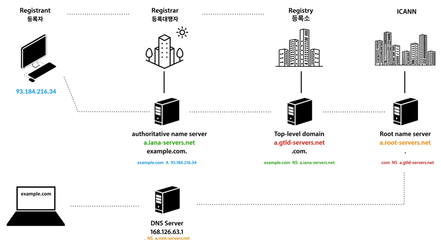 - 주소 입력 👉 DNS 서버 접속 👉 주소에 해당하는 IP 주소 반환 👉 해당 IP 주소로 접속 👉 도메인 관리가 자동화 👉 행정절차 간소화, 신속화