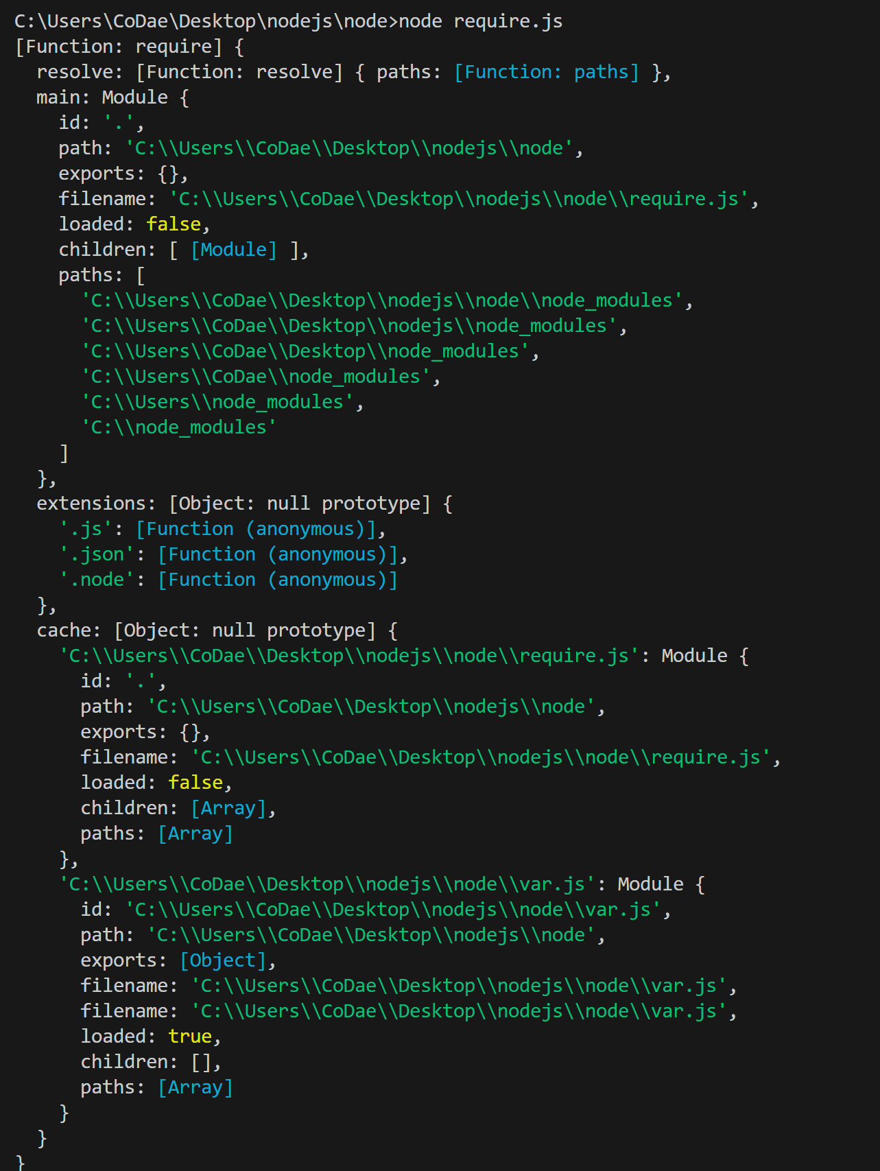 require.cache는 한번 require 된 파일들을 캐시에 저장해두고 불러오기 때문에 빠르다.