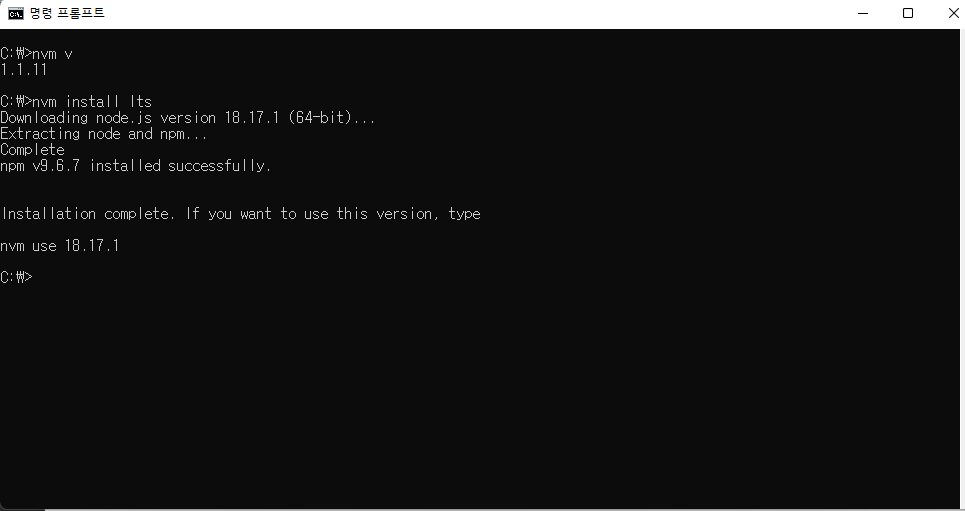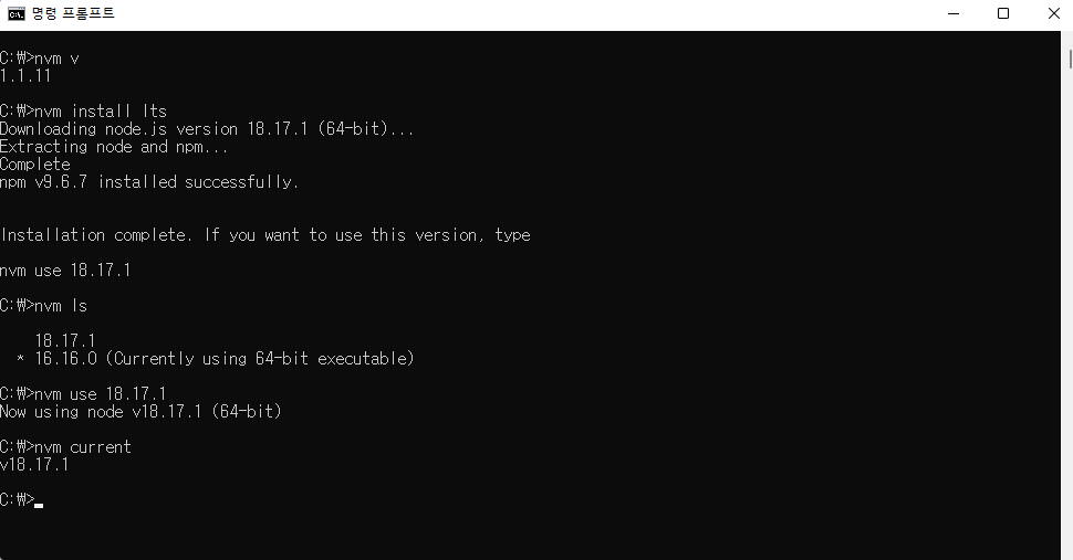 nvm install 18.17.1 ////// node 18.17.1 버전의 설치