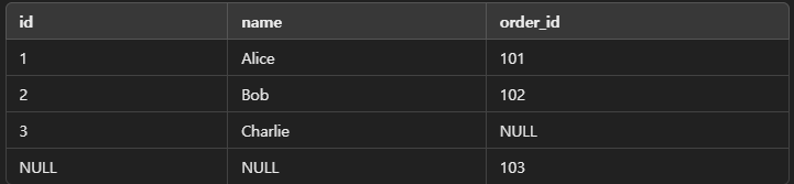 FULL OUTER JOIN orders b ON a.id = b.customer_id;