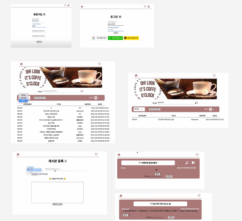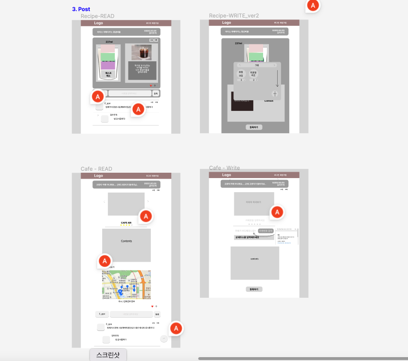 레시피 게시판은 커피에 관심이 있는 사람들이 직접 레시피를 디자인할 수 있도록 이미지 도식화를 해보기로 했다. DB구조를 싹다 바꿔야하는데도 서버 친구가 너무 좋다고 긍정적으로 받아들여줘서 좋았다 (사랑해 민지야)