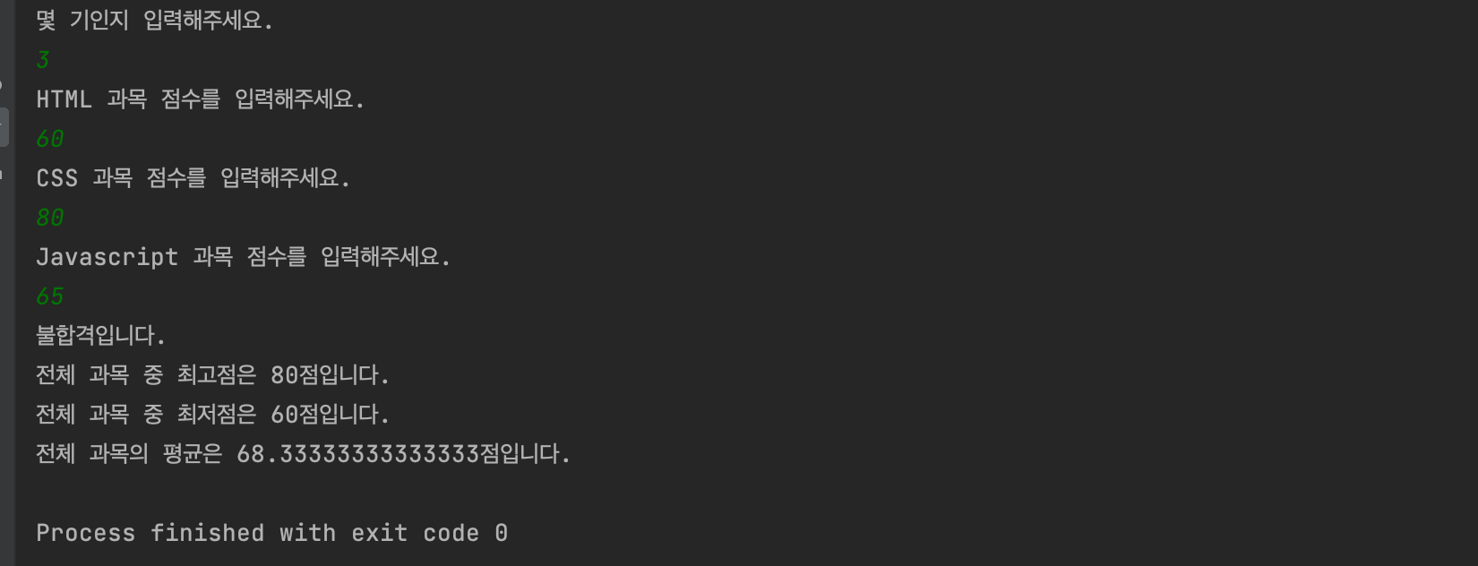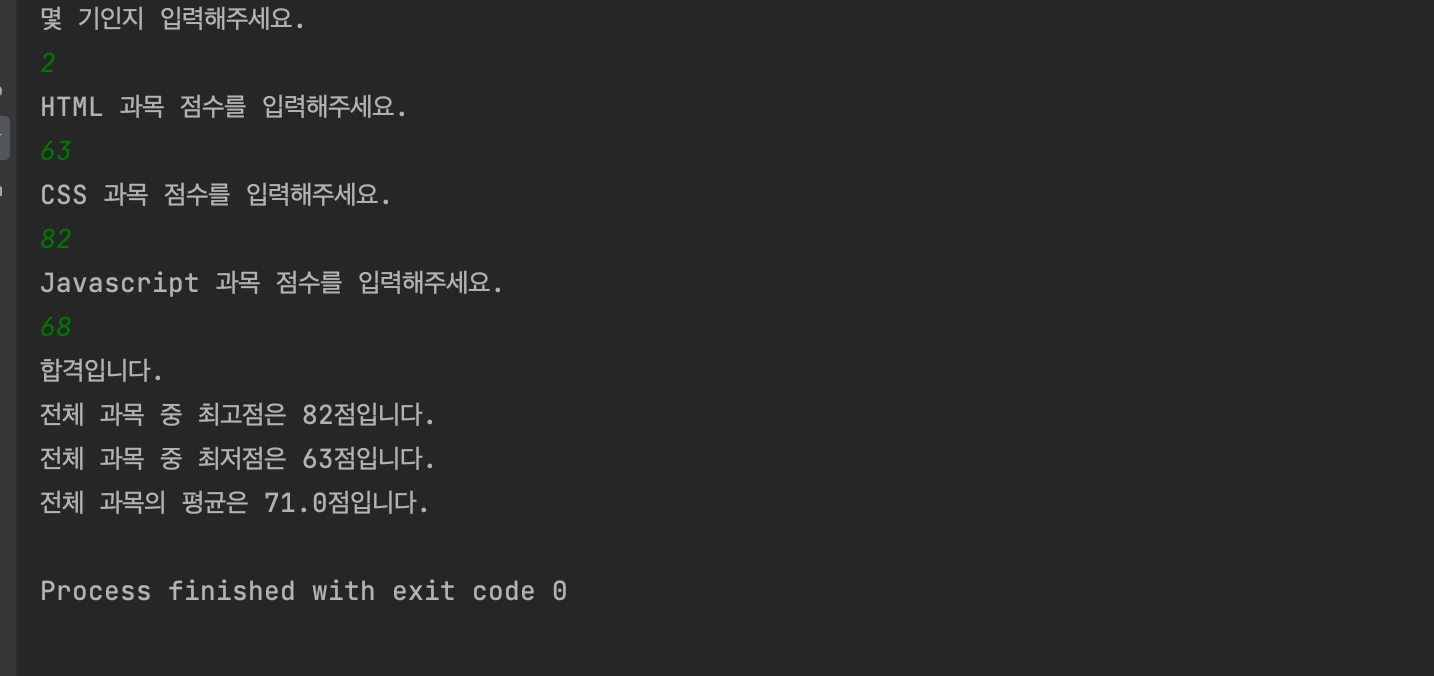 System.out.println("HTML 과목 점수를 입력해주세요.");