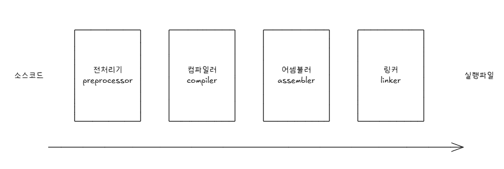 - 전처리가 완료된 소스 코드를 저급 언어(어셈블리 언어)로 변환