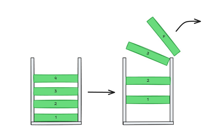 - 스택: 한 쪽 끝이 막혀있는 통과 같은 구조