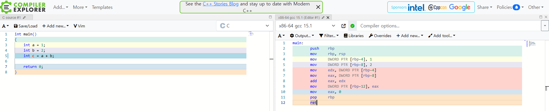 소스 코드로 어셈블리어를 볼 수 있는 사이트다. WOW