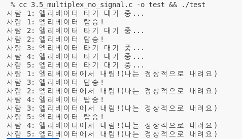 printf("사람 %d: 엘리베이터에서 내림!(나는 정상적으로 내려요)\n", id);