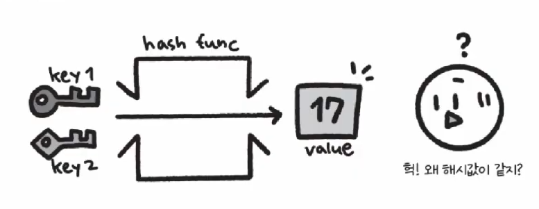 2) 해시 함수가 변환한 값의 충돌은 최대한 적게 발생해야 함(충돌이 많이 발생할 수록 성능이 떨어짐)