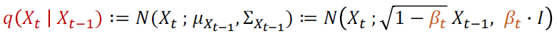 여기서 Bt는 각 단계에서 노이즈의 크기를 조절하는 하이퍼 파라미터
