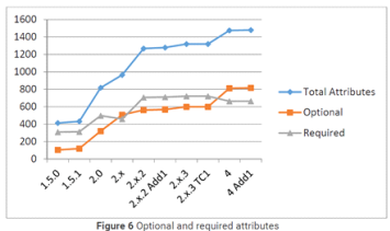 Required Attribute의 감소와 Optional Attribute 증가는 속성정보가 부족할 경우에도 IFC를 더 많은 조건에서 사용할 수 있다는 것을 나타낸다.