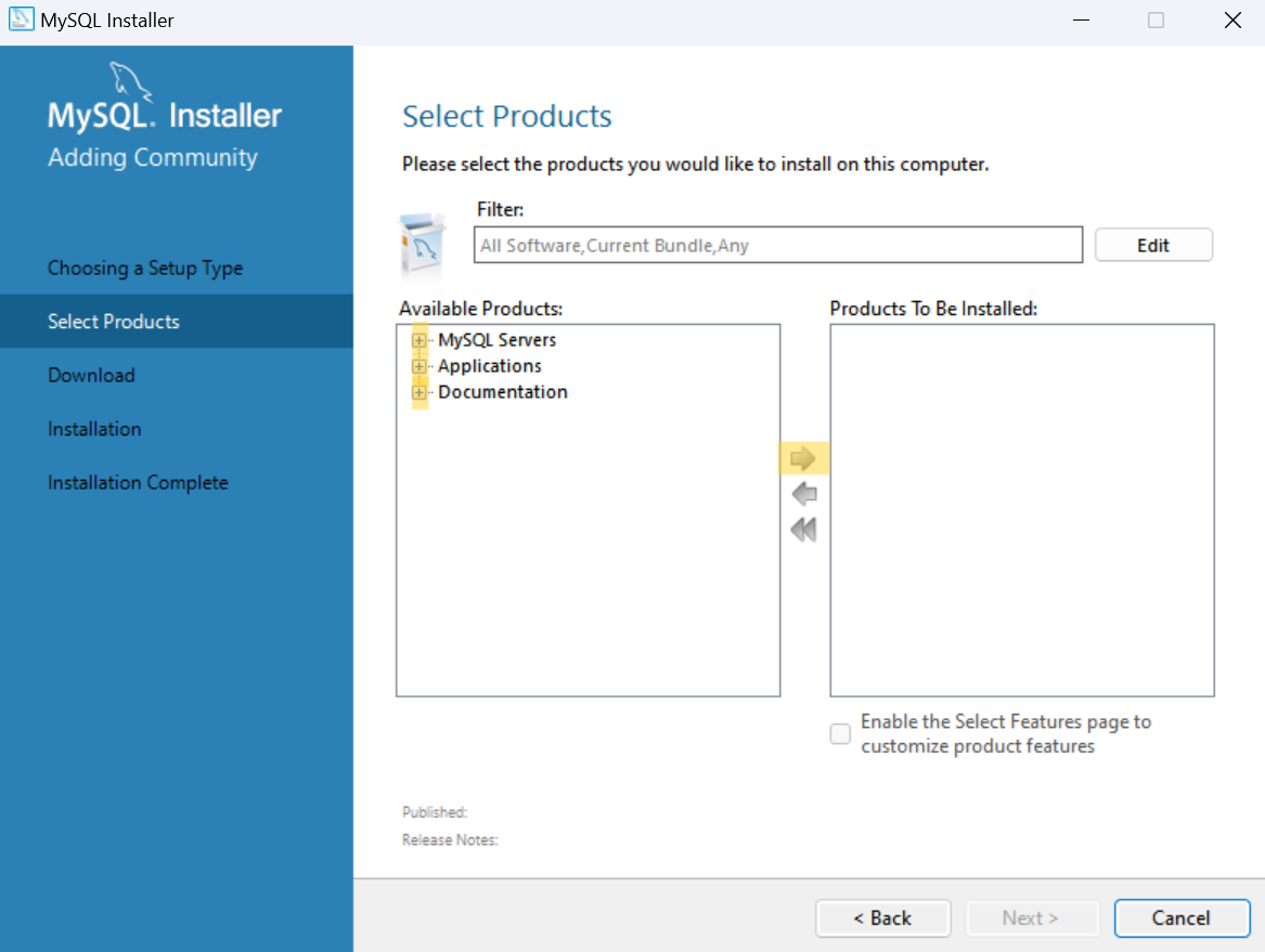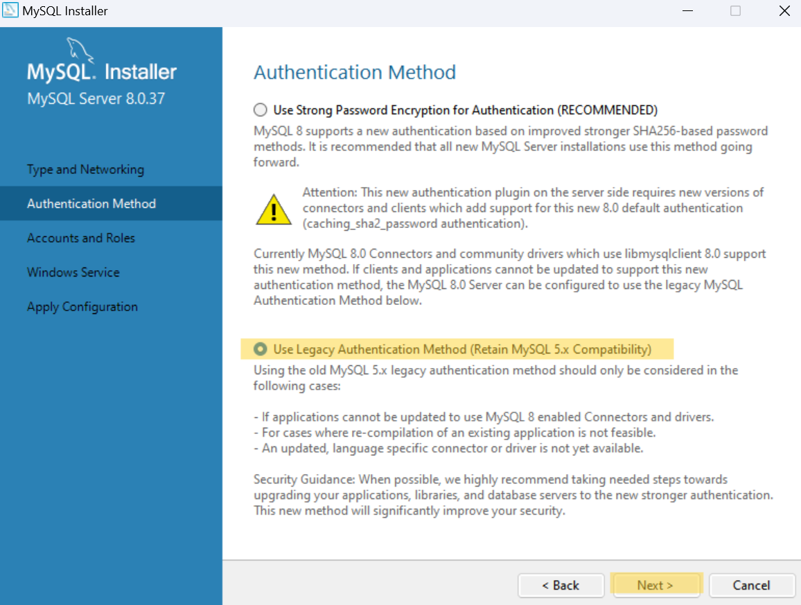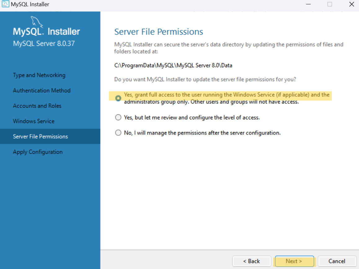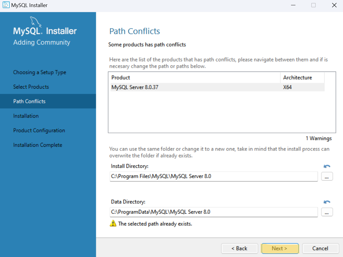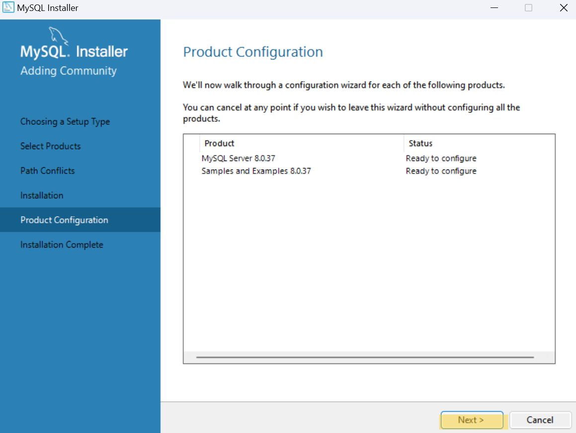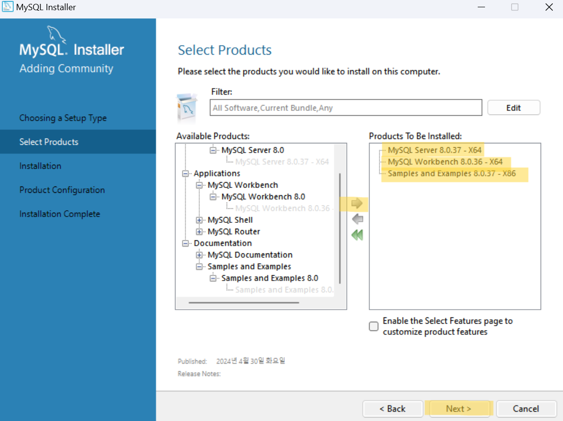 다시 MySQL Server 8.0.37과 Samples and Examples 8.0.37 제품에 대한 환경 설정으로 돌아온다.