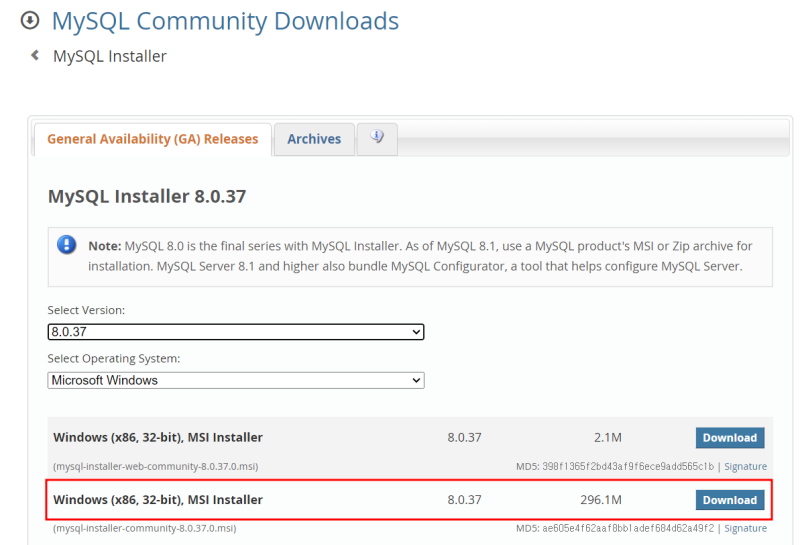 MySQL Server 8.0.37 - X64
