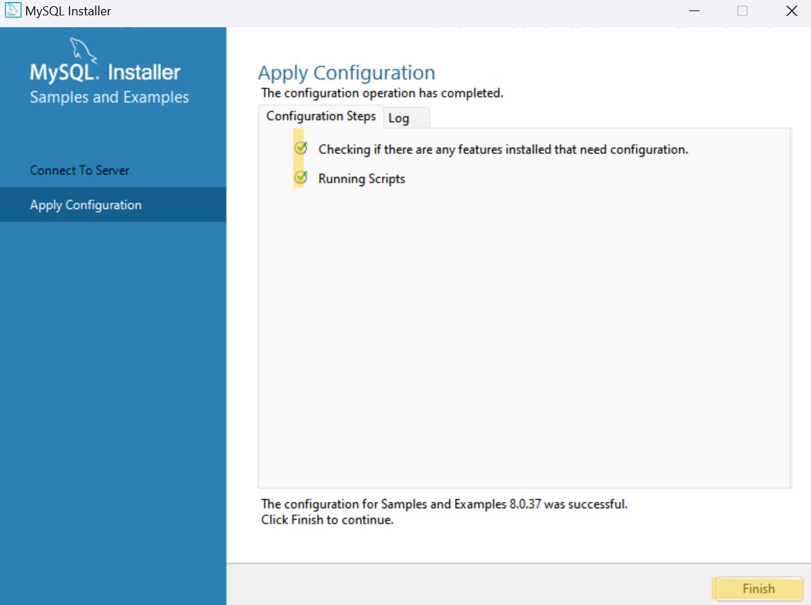 MySQL Server 8.0.37에 대한 환경설정이 끝났으므로 Samples and Examples 8.0.37에 대한 환경 설정으로 돌아간다.