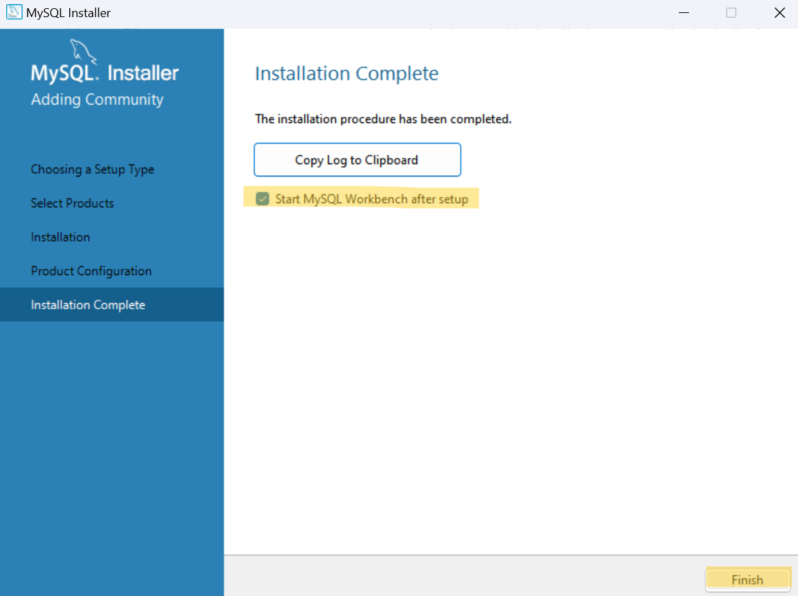 Start MySQL Workbench after setup 선택 후
