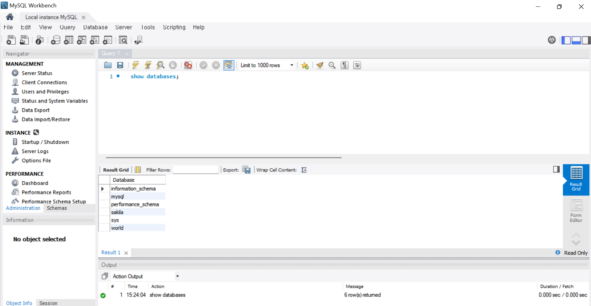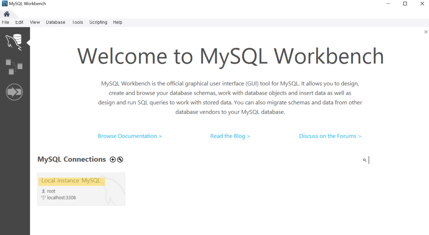 Local instance MySQL 더블클릭