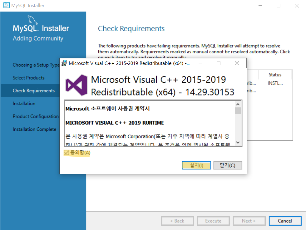 동의하고 설치하기
