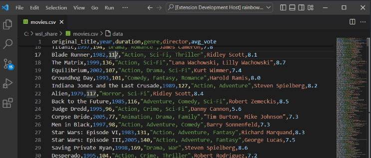 해당 익스텐션은 아래와 같이 컬럼을 색으로 구분하여 보기 편하게 해줍니다.