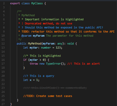 주석 뒤에 *,!, ?, TODO, //를 추가하면 색깔이 변경됩니다.