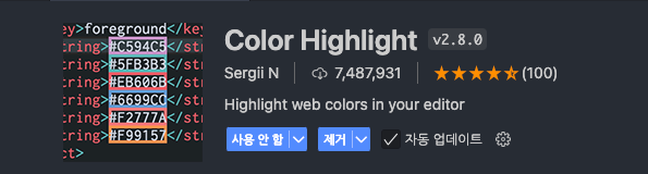 16진수 값을 코드상에서 시각적으로 확인할 수 있습니다.