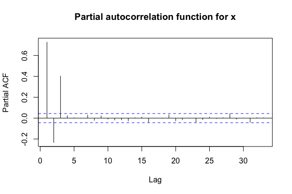 두 시점간의 직접 영향, 부분상관계수 : PACF