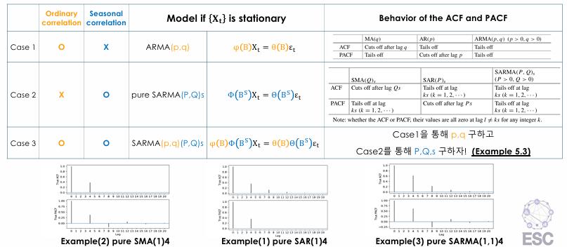 | Case | Ordinary Correlation (p,q) | Seasonal Correlation (P,Q) | Model | 설명 |