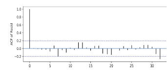 -잔차 간 자기상관을 파악하는 방법으로는, 우선 잔차의 ACF를 구하는 방법이 있다.