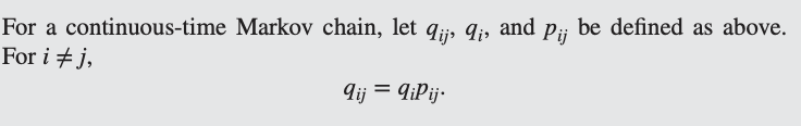 qij: transition rates of the continuous time process. i→j로 가는 속도