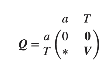 - Q는 각 상태에서 다른 상태로 이동하는 속도를 나타내는 행렬이다.