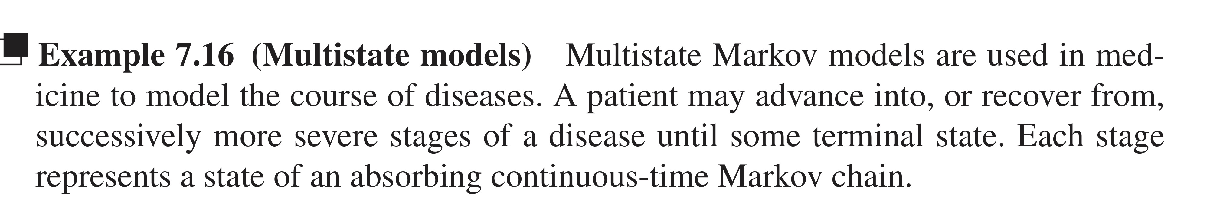 - 다중 상태 마르코프 모델(multistate Markov model) 은 환자가 병의 여러 단계(상태)를 거쳐 진행하거나 회복하는 과정을 설명하는 데 사용됩니다.