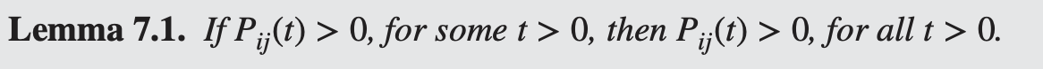 → 즉, Pij(t)>0 for all i,j and t>0
