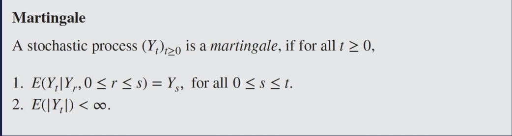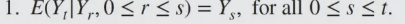 E [ Y t ] = E [ E [ Y t ∣ Y r , 0 ≤ r ≤ s ] ] = E [ Y s ] , 0 ≤ s ≤ t E[Y_t]=E[E[Y_t|Y_r,0\leq r\leq s]]=E[Y_s],0\leq s\leq t E [ Y t ] = E [ E [ Y t ∣ Y r , 0 ≤ r ≤ s ] ] = E [ Y s ] , 0 ≤ s ≤ t