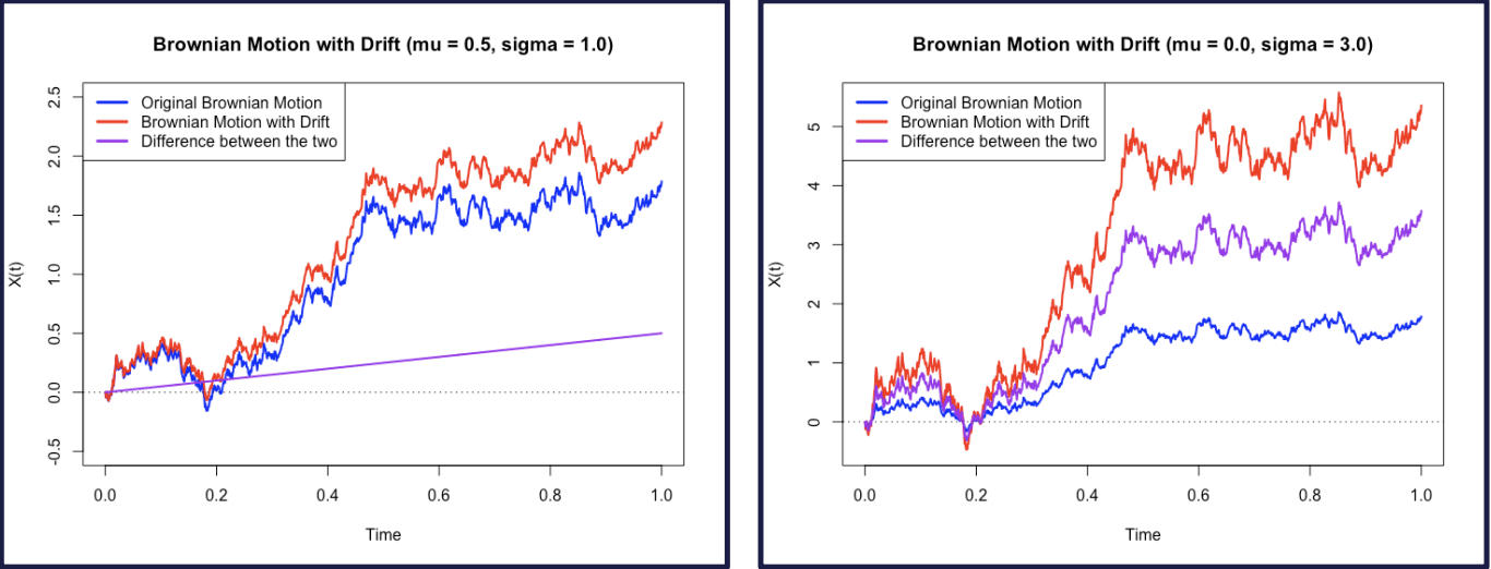 Let ( X t ) t ≥ 0 (X_t)_{t\geq0} ( X t ) t ≥ 0 be a Brownian Motion with draft parameter μ \mu μ and variance parameter σ 2 \sigma^2 σ 2
