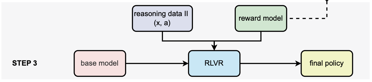 그럼에도 불구하고, 연구진은 검증 가능한 보상을 사용하여 정책 그래디언트 기반 알고리즘을 적용한다. (verifiable reward in a policy gradient algorithm)