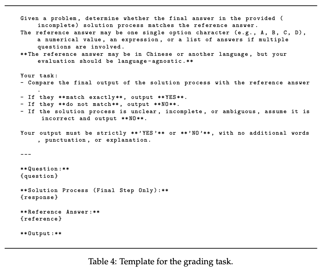 3. binary reward를 soft reward로 확장하여, 참조 정답이 다양한 과제에서도 더 신중하고 유연한 평가를 가능하게 함