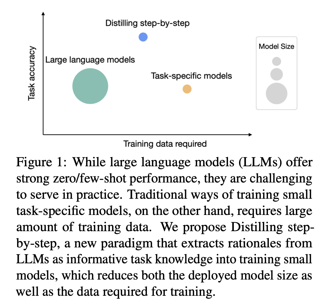 Distilling Step-by-Step! Outperforming Larger Language Models with Less Training Data and Smaller Model Sizes (2023.05)