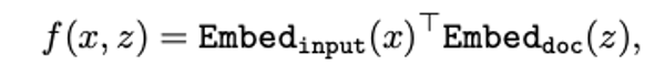 - document z와 Input x의 임베딩 벡터 간의 내적값을 계산