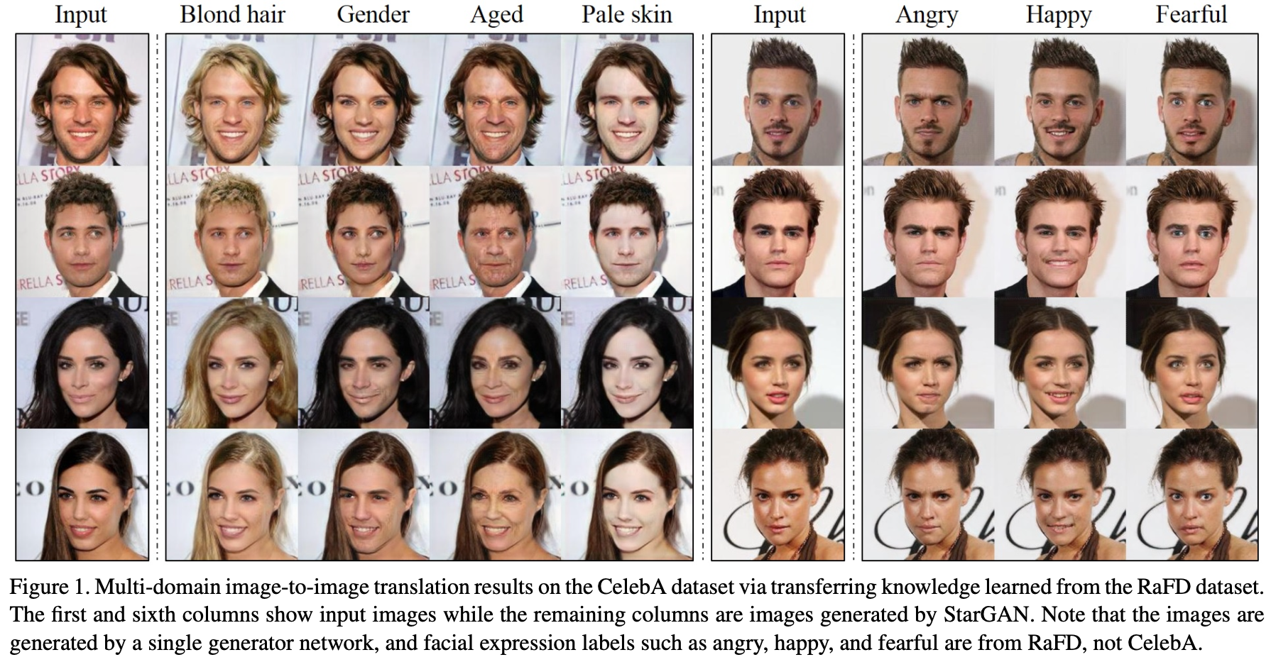 • We provide both qualitative and quantitative results on facial attribute transfer and facial expression synthesis tasks using StarGAN, showing its superiority over baseline models.