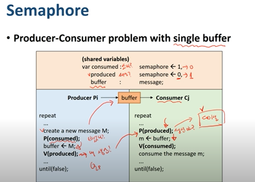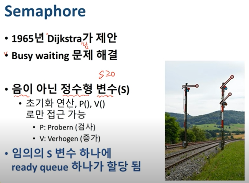 반면 Semaphore는 busy waiting이 없다.