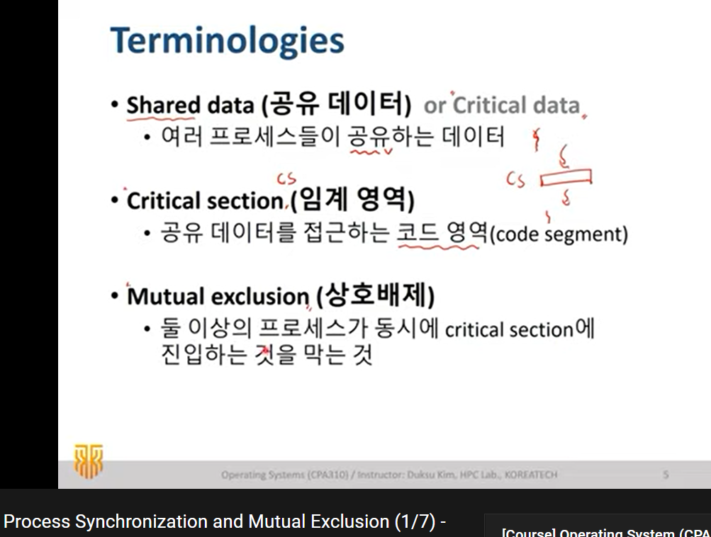 critical section: 공통으로 접근하는 공간