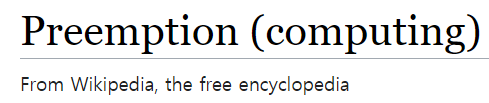 In computing, preemption is the act of temporarily interrupting a task being carried out by a computer system, without requiring its cooperation, and with the intention of resuming the task at a later time. Such changes of the executed task are known as context switches. They are normally carried out by a privileged task or part of the system known as a preemptive scheduler, which has the power to preempt, or interrupt, and later resume, other tasks in the system.