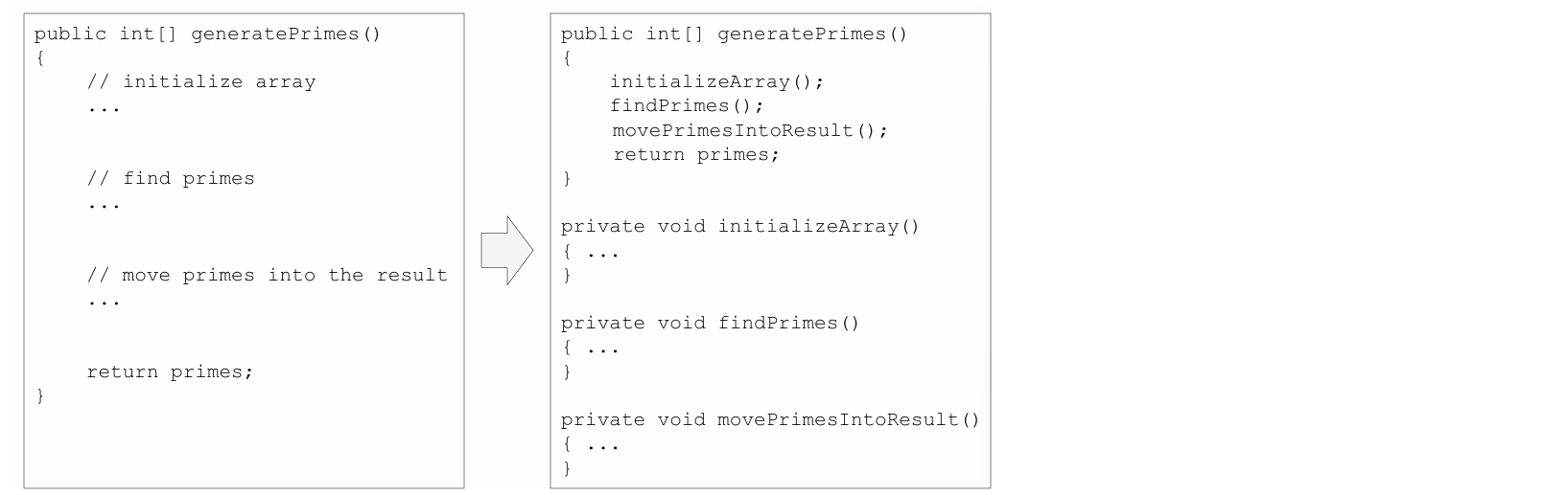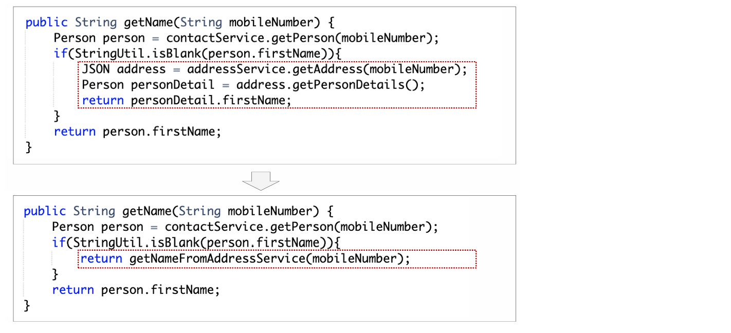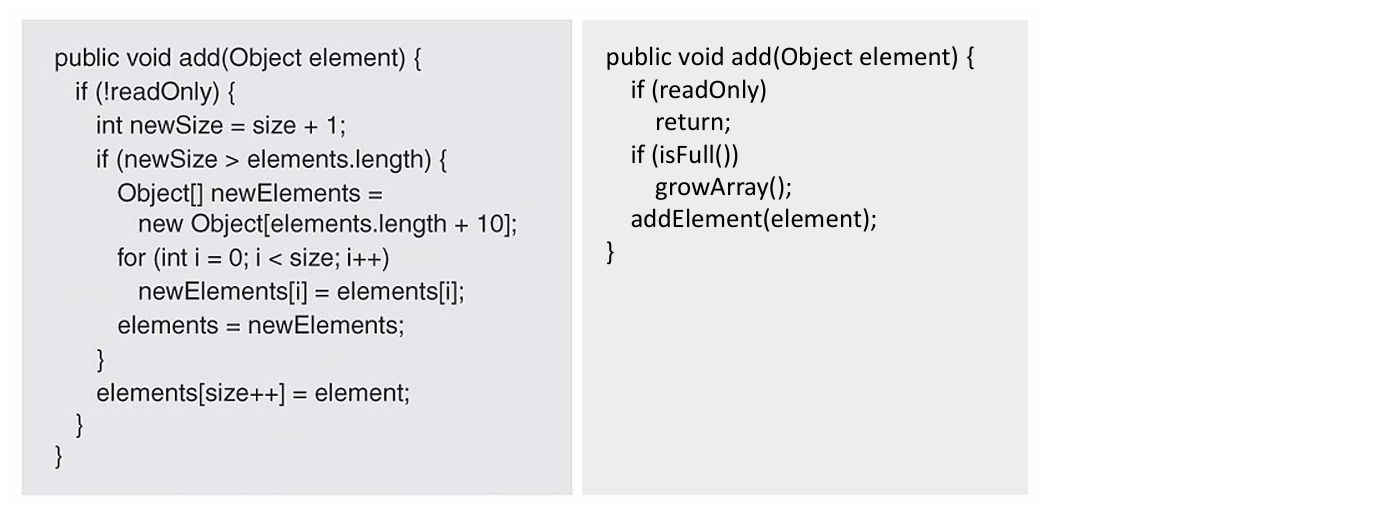 여기서도 isFull일 경우에 배열 크기를 키우고, element를 추가한다는 것을 오른쪽 코드에서 단번에 파악 가능하지만, 왼쪽 코드는 독자가 읽어가며 의도를 생각해야한다.