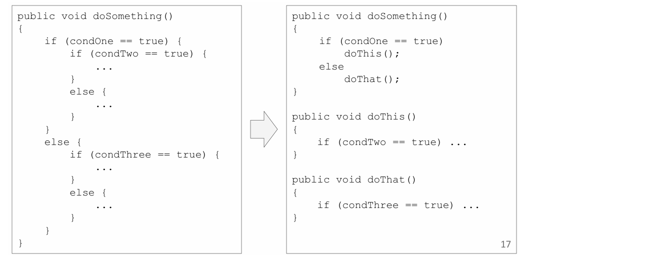 if 문 안에서 두 줄 이상의 코드가 적히면 일단 좋지 않다. 특히 세 줄 이상 넘어가면 함수로 빼는 것이 바람직하다.