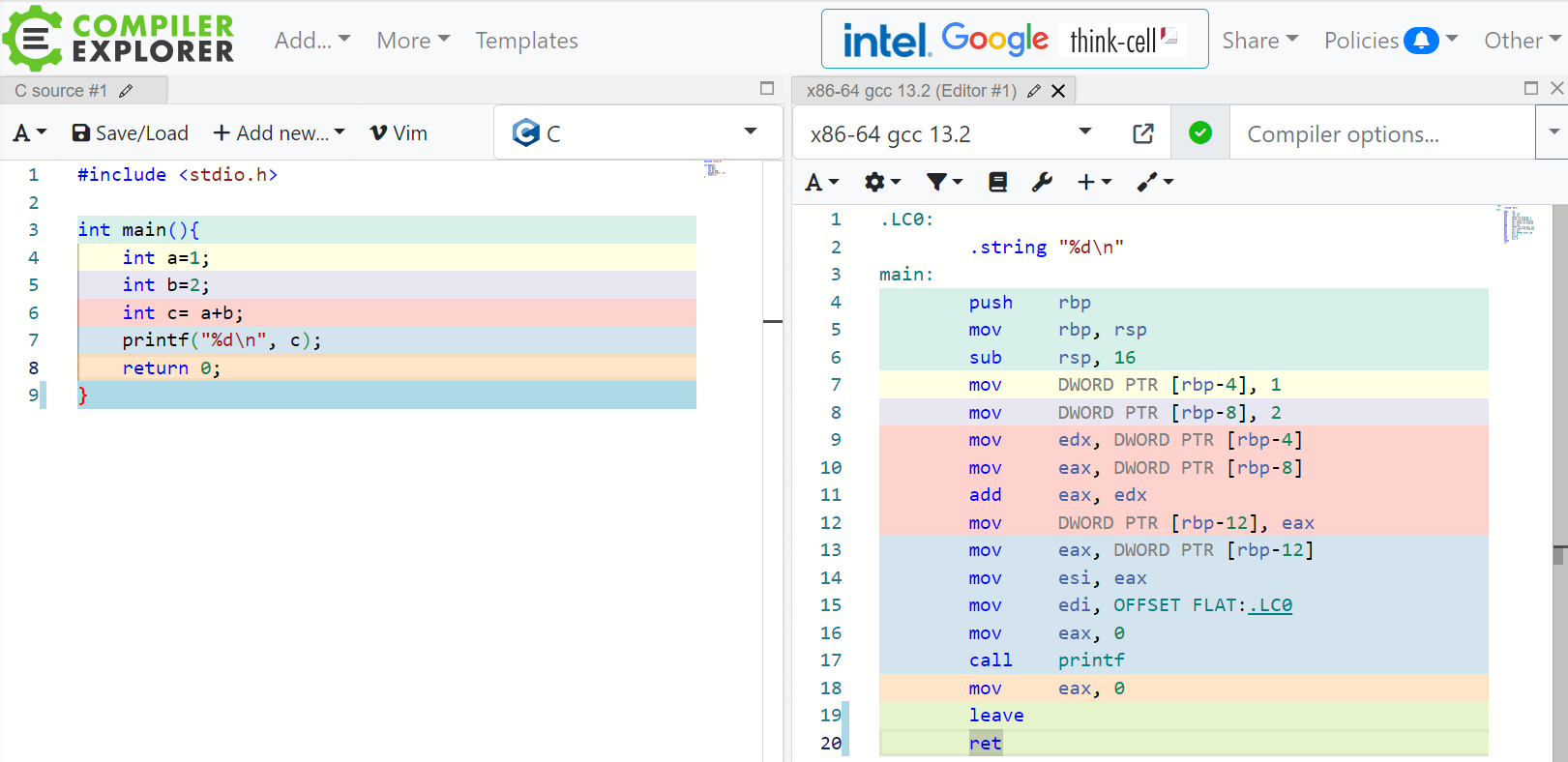 고급언어에서 저급언어로 바뀌는 과정은 complier explorer에서 확인 가능하다. (https://www.godbolt.org/)