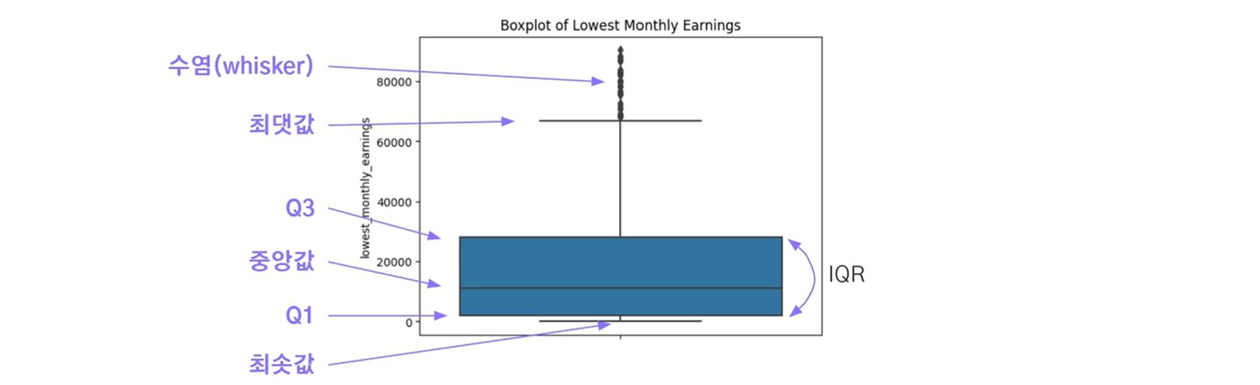 다음 5개의 요약 통계량을 하나의 박스와 선으로 표현