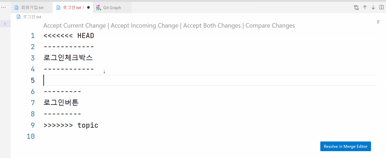 그럼 충돌을 "fix"하고 "commit" 해야한다