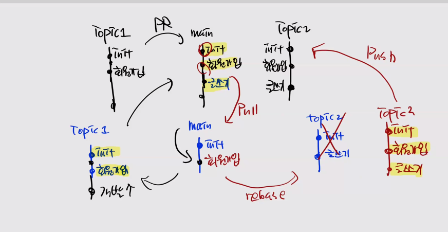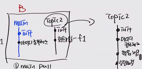 $ git checkout -b topic (topic만들면서 main에서 topic으로 이동)
