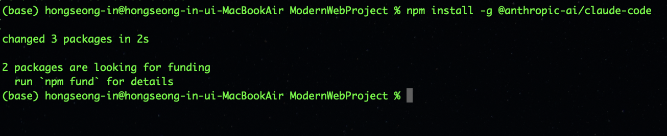 npm install -g 명령에서 권한 오류가 발생했네요. 이 오류는 시스템 디렉토리에 패키지를 설치할 권한이 없어서 발생하는 흔한 문제입니다. 해결 방법은 다음과 같습니다: