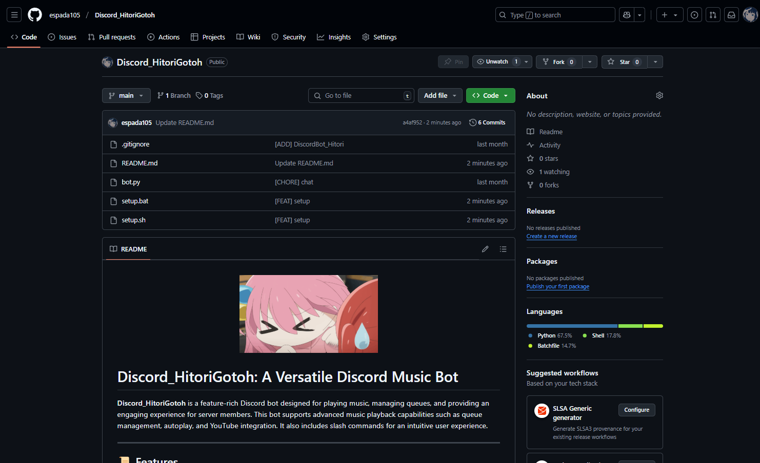 개인의 키를 받고 디스코드상 애플리케이션(봇)을 설정하고 나면 로컬에서 파일 실행으로 봇을 활성화할 수 있다.